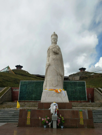 孫悟空蟄伏的日月山下,矗立着文成公主的廟宇,一尊漢白玉雕像代表漢藏兩族人民對她的嗎緬懷。
