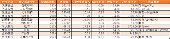 人都是要向前看的,我們來梳理下漲幅超過10%的行業中,區間漲幅最高的標的都有哪些。