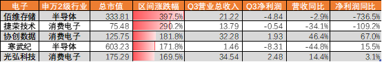 圖:電子行業漲幅前五標的,來源:Choice金融客户端,錦緞整理 單位:億元