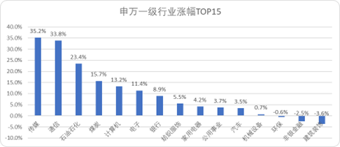 圖:申萬一級行業年漲幅TOP15,來源:Choice金融客户端,錦緞整理
