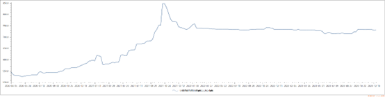 圖:動力煤港口價格趨勢,來源:Choice金融客户端 單位:元/噸