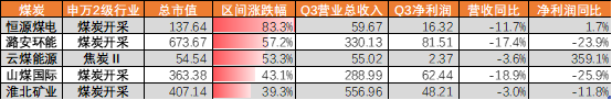 圖:煤炭行業漲幅前五標的,來源:Choice金融客户端,錦緞整理 單位:億元