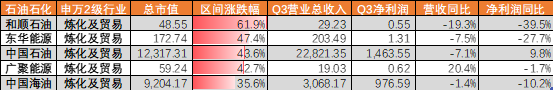 石化油服行業無論是煉化還是貿易,都取得了不俗的增長,今年三季度同比營收、利潤出現收縮,主要原因還是在於去年同期的基數太高。