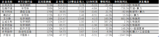多數科創板漲幅居高的企業還沒有實現商業化落地,僅主打奧希替尼國產替代的創新藥企業艾力斯,前三季度實現了淨利潤過億的商業規模。