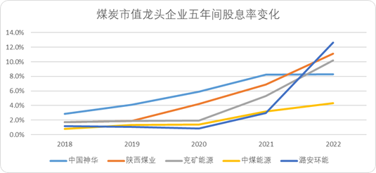 同時煤炭也是優質的風險對沖資產,兩年間股息率大幅上漲,截至2022年報期,中國神華的股息率為8.3%,陝西煤業為11.1%,而潞安環能更是達到了驚人的12.6%。