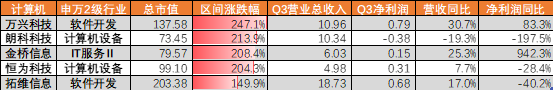 圖:計算機行業漲幅前五標的,來源:Choice金融客户端,錦緞整理 單位:億元