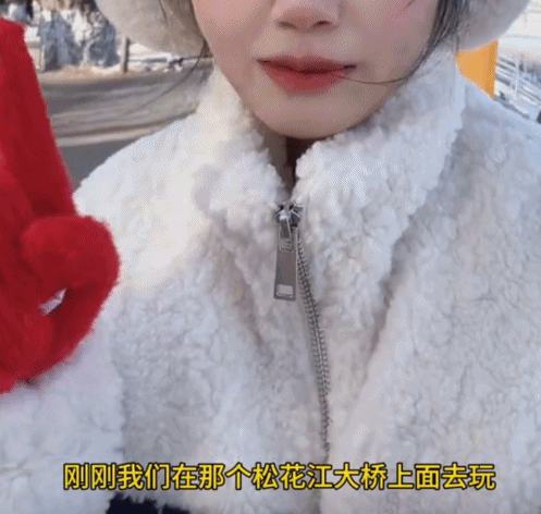 比如下面這位廣東女生,第一條視頻甚至連羽絨服拉鍊都沒有拉起來,在街頭興奮地大喊:感覺也沒有很冷啦!