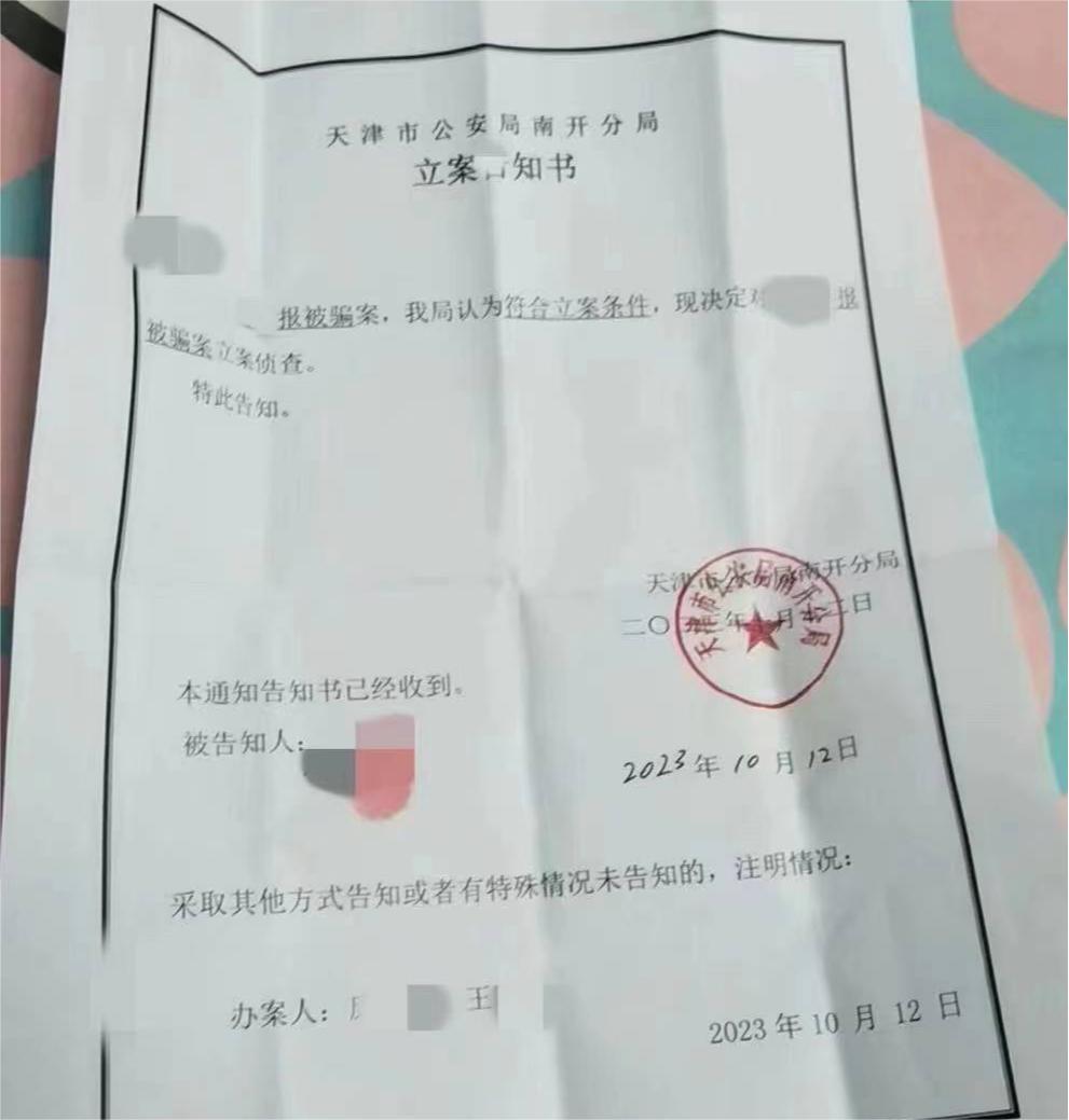 天津市公安局南開分局萬興派出所民警表示:該案件已經由經偵部門(經濟犯罪偵查局部門)統一接管,天津警方目前也已陸續在全國範圍內發出協查函。