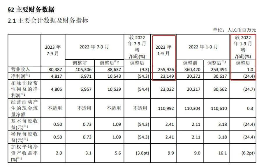 財報數據顯示,2023年前三季度,中國太保實現營業收入2559.3億元,同比增長1.0%;實現歸屬於母公司淨利潤231.5億元,同比下降24.4%。