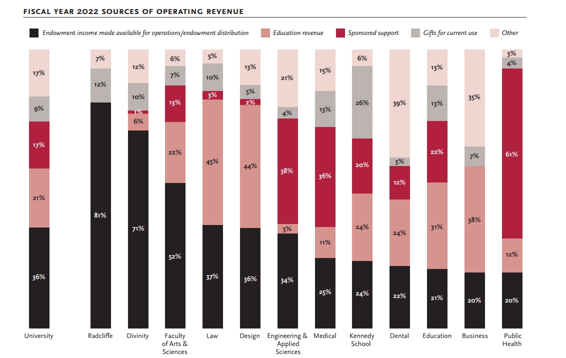 著名美國私立大學,哈佛。36%的年收入來自捐款造就的基金會。22年總收入也就58億美元吧。