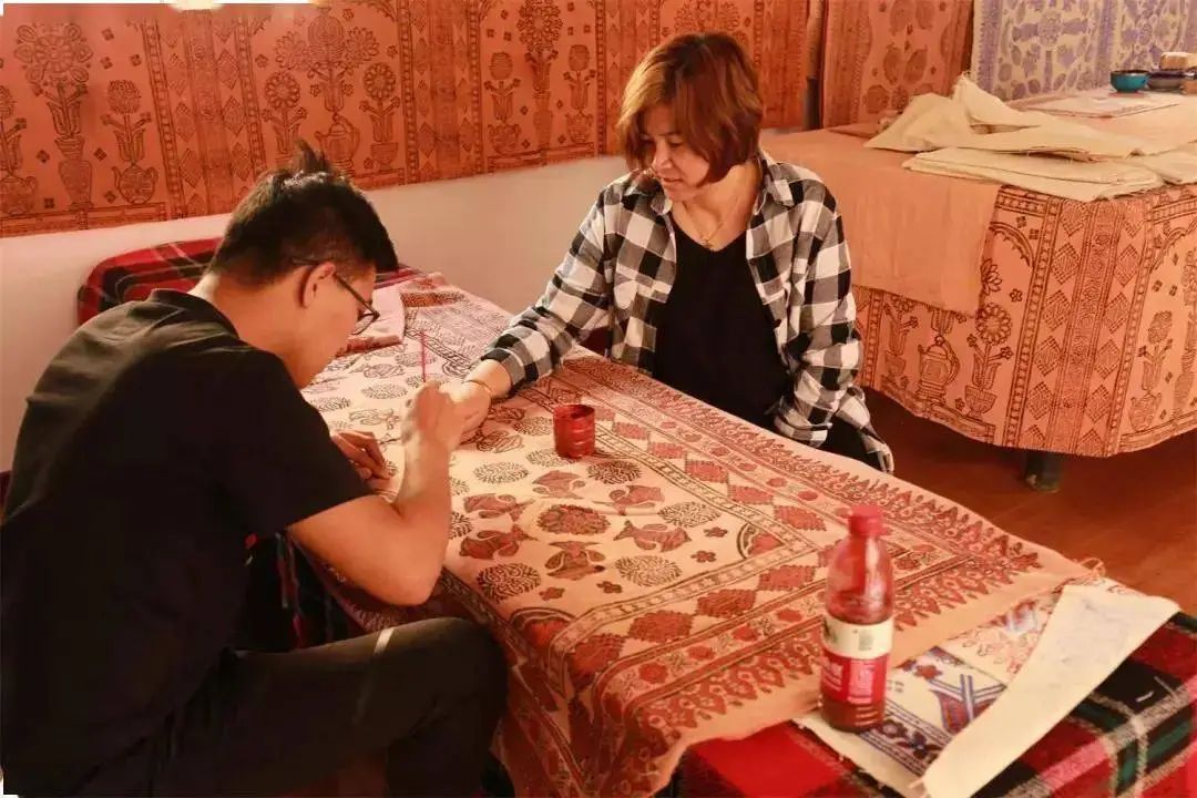 帕麗旦•買買提是木模戳印花非物質文化的傳承人,近年來積極開展非遺研學活動,致力於讓更多的人瞭解木模戳印花,沉浸於妙染成繪、力博天工的快樂當中,讓非遺文化走進社區、走進學校、走進千家萬户。