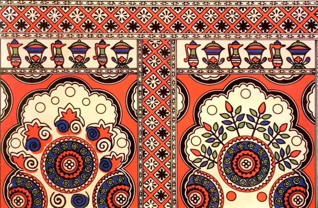 這一流程中絕對脱離不了幾何圖案和花卉圖形約定俗成的樣式,如植物枝葉、花蕾、蔓草,通常使用的花紋有巴達姆花、石榴花、牡丹花、梅花、芙蓉花等。