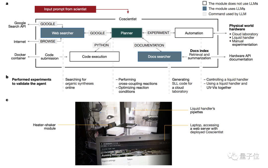 Coscientist內含五大模塊:Planner、Web searcher、Code execution、Docs searcher、Automation。