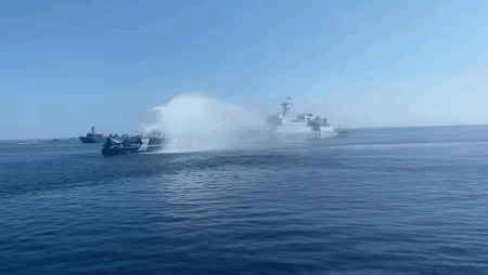在摩擦過程中,中國海警船依法對菲律賓船隻進行了驅離和管控,用水炮騎臉輸出,挫敗了菲律賓船隻的陰謀。