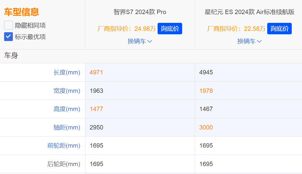 星紀元 ES 和智界 S7 相比,便宜 1-2 萬,少了華為的智駕和鴻蒙這些技術,但是在配置上卻給了更多的東西。