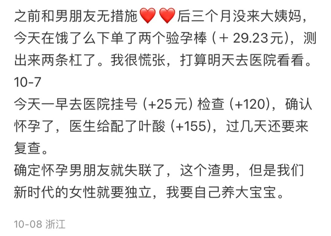 一開始網友看到這些假懷孕官宣帖,每天事無鉅細po費用明細,會覺得:為了存這麼點兒錢,不必這麼拼吧。