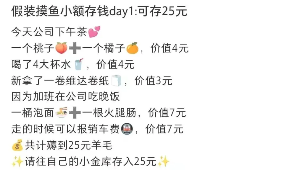 想要輕鬆一點的朋友,可以選擇“假裝摸魚存錢”,每天幻想着摸魚吃各種小零食,這不比吃播還讓人上癮。