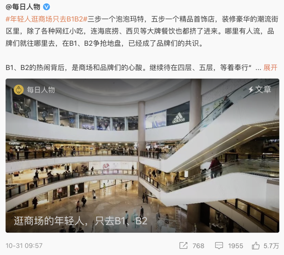 無所謂,網友會出手,前段時間“年輕人逛商場只去B1B2”爆上熱搜,畢竟年輕人需要的東西B1B2層已經包圓了。