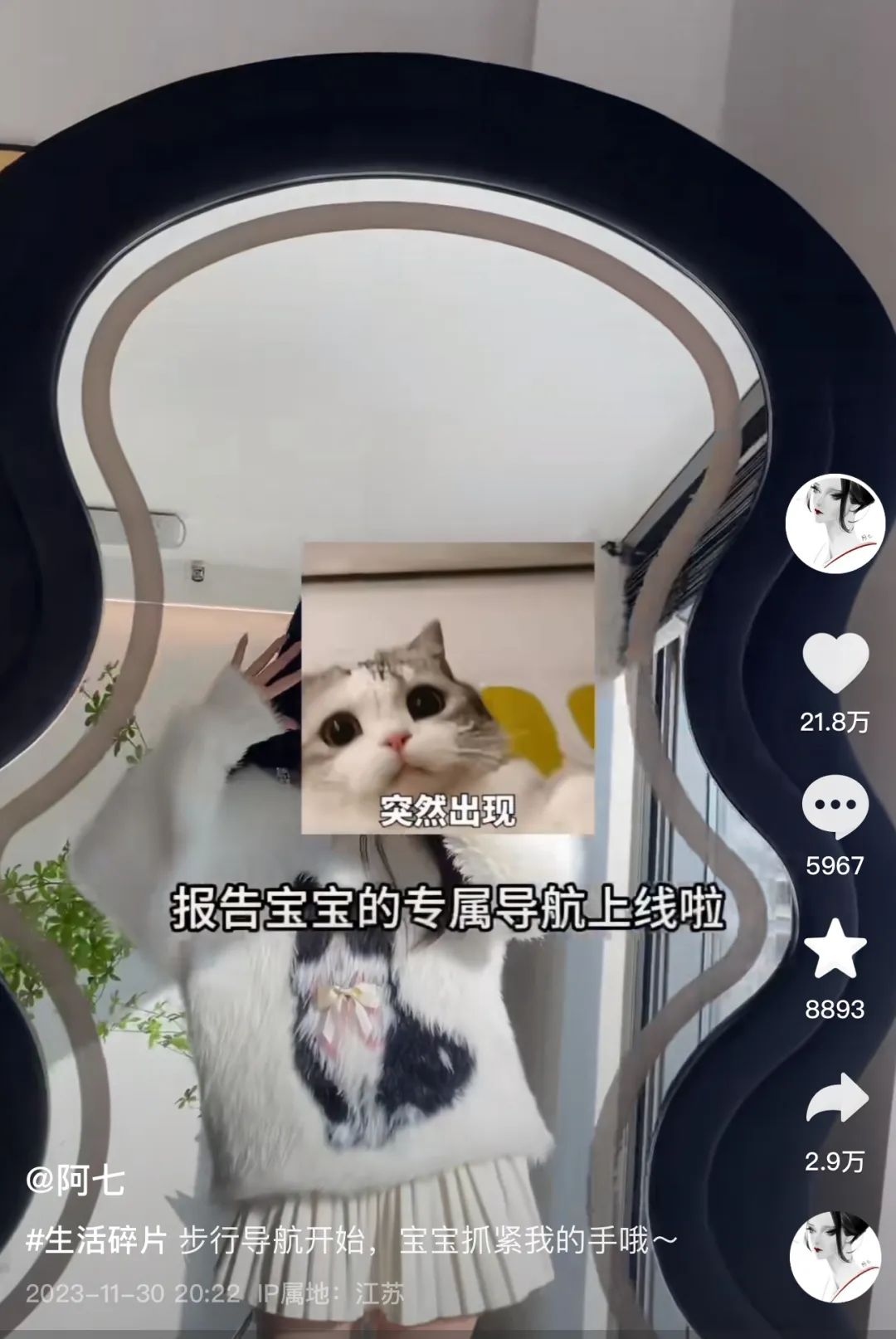 所謂“電子女友”,某種程度上可以視為《完蛋,我被美女包圍了》這一互動遊戲的短視頻化,代表性的達人,有粉絲量已經超過1000萬的“阿七”。其視頻內容並不複雜,就是對準鏡頭事無鉅細地報備自己一天的行程,並稱粉絲為“寶寶”。偶爾還會説幾句浪漫情話,直戳粉絲的內心。