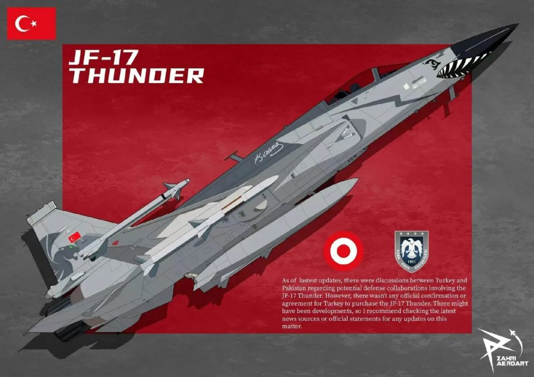 一些社交媒體上還出現了為土耳其空軍設計的JF-17 “梟龍”戰鬥機的塗裝方案想象圖。帶有鯊魚嘴和土耳其風格的垂尾彩繪,非常漂亮。
