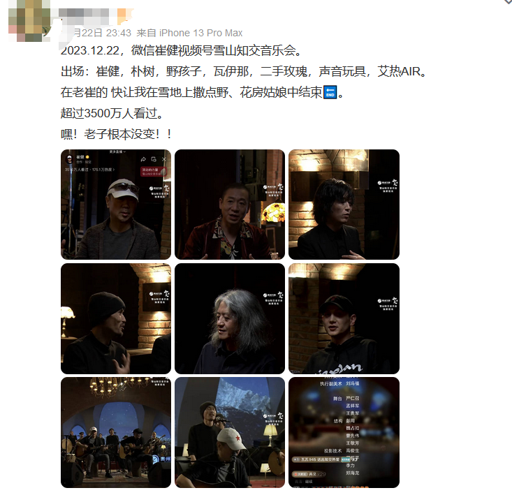 就在週五晚上,崔健發起的**“滾動的力量·雪山知交音樂會”**正式上線了,大家都看了嗎?