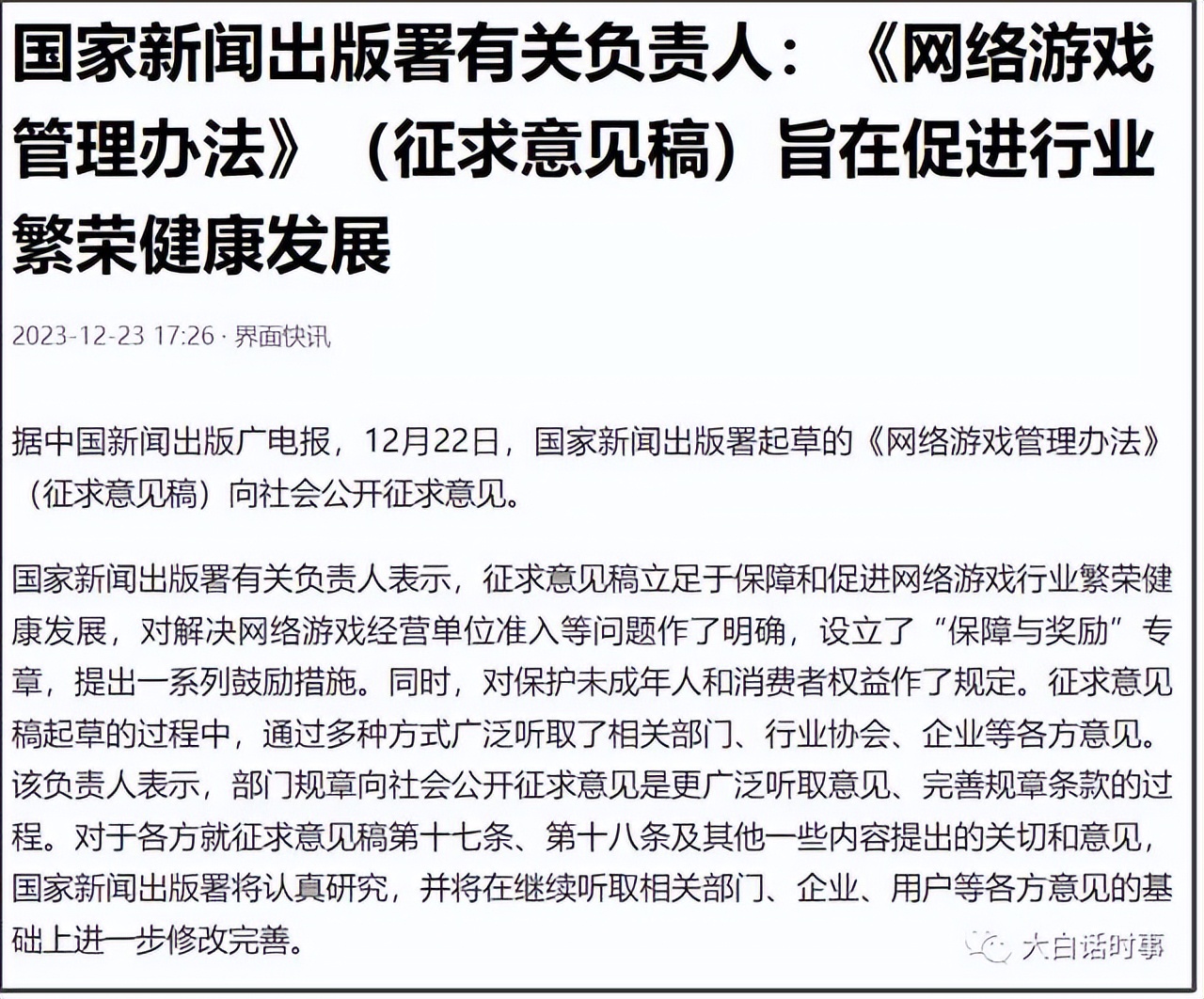 這次網遊新規出來後,因為昨天遊戲板塊股價大跌,導致股市下跌,搞得很多人情緒比較激動,今天應該情緒稍微平復一些,不少人才會翻出來新規的具體內容看一看。