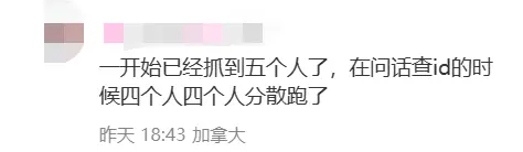一位同樣在現場的華人網友回帖説:“一共五個人,抓到之後警察問話的時候,四個又跑了!原地控制住一個,在外面抓回來一個。其他的不清楚。”
