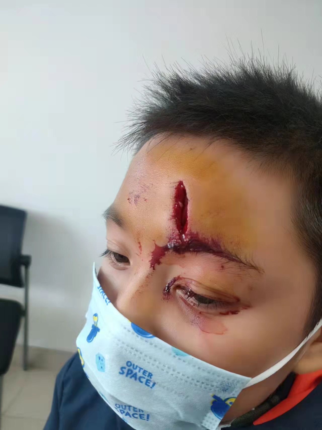 在醫院,醫生表示已傷及額骨並造成骨折,醫生清理出許多骨頭渣子,傷口處至今留有明顯疤痕。且醫生表示,以後無論怎麼做除疤治療,均不能徹底消除疤痕。孩子從小到大的顏值一直都很高,聽聞醫生此言,一股悲涼頓時湧上心頭。