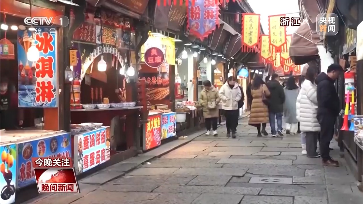 在浙江省杭州市臨平區的塘棲古鎮,熱氣騰騰的手打年糕、粢毛肉圓等傳統特色美食,也吸引了不少遊客駐足體驗。制糕師傅拿出精雕細琢的印花糕板,把揉好的麪糰放到模具裏面一壓,一個帶着漂亮花紋的糯米糕就做好了。