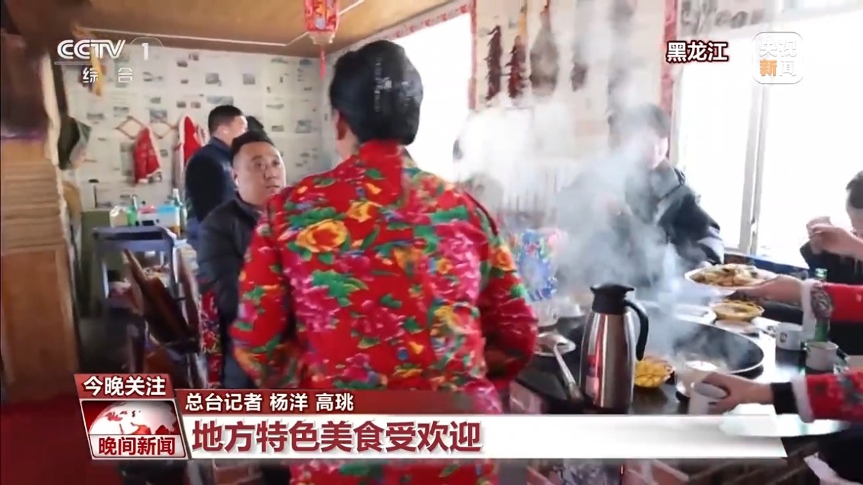隨着氣温走低,不少地方特色美食,也備受消費者青睞。在黑龍江尚志市青山村,老闆娘正在給南方來的遊客介紹東北的特色美食鐵鍋燉。