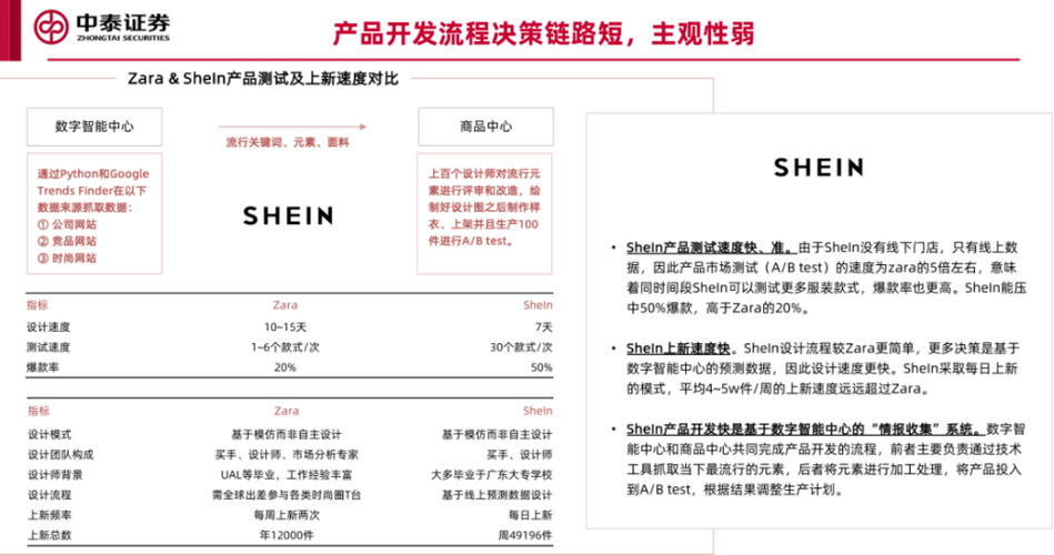 ▲中泰證券研報稱,Zara每年上新新品12000件,尚不及Shein每週上新數量的1/4.