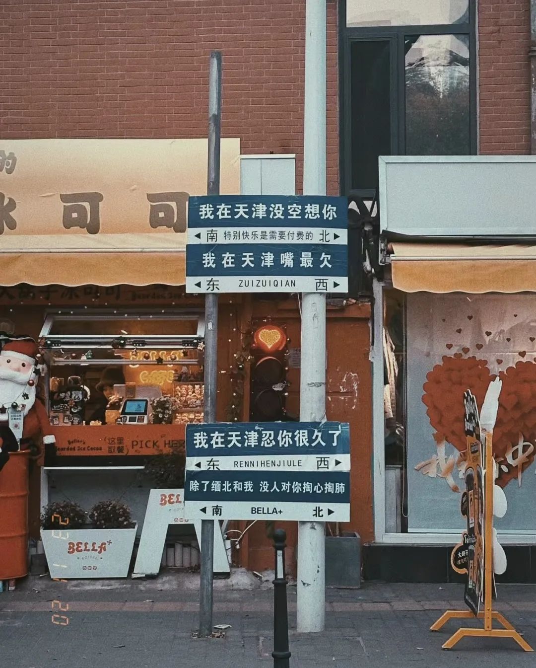 天津的路牌也很有意思,他們不會説“我在這裏等你”之類肉麻的話,而是快人快語。“我在天津沒空想你”“我在天津嘴最欠”等標識牌讓人見識到這一最具煙火氣的北方城市的幽默。