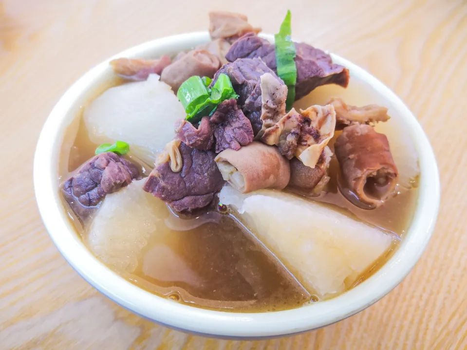 豎劈也好橫切也罷,泡在牛雜鍋裏吸足湯汁,是白蘿蔔在這顆星球上受到的最優待遇之一,要不怕老闆臉色難看,單吃一碗都是至味。