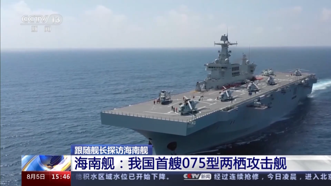 一艘滿載排水量4萬噸有“小航母”之稱的075型兩棲攻擊艦,5艘7000噸的052D型驅逐艦,2艘6000噸的054B型導彈護衞艦,另有未經證實的消息稱,中國海軍還下水了3艘9000噸的093B型攻擊核潛艇以及兩艘2600噸左右039C型常規動力潛艇。