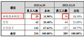 那麼,永臻股份為何愛用學歷在大專以下的研發人員?其技術門檻到底如何?另外,永臻股份2023年上半年高學歷的研發人員為何大量流失?