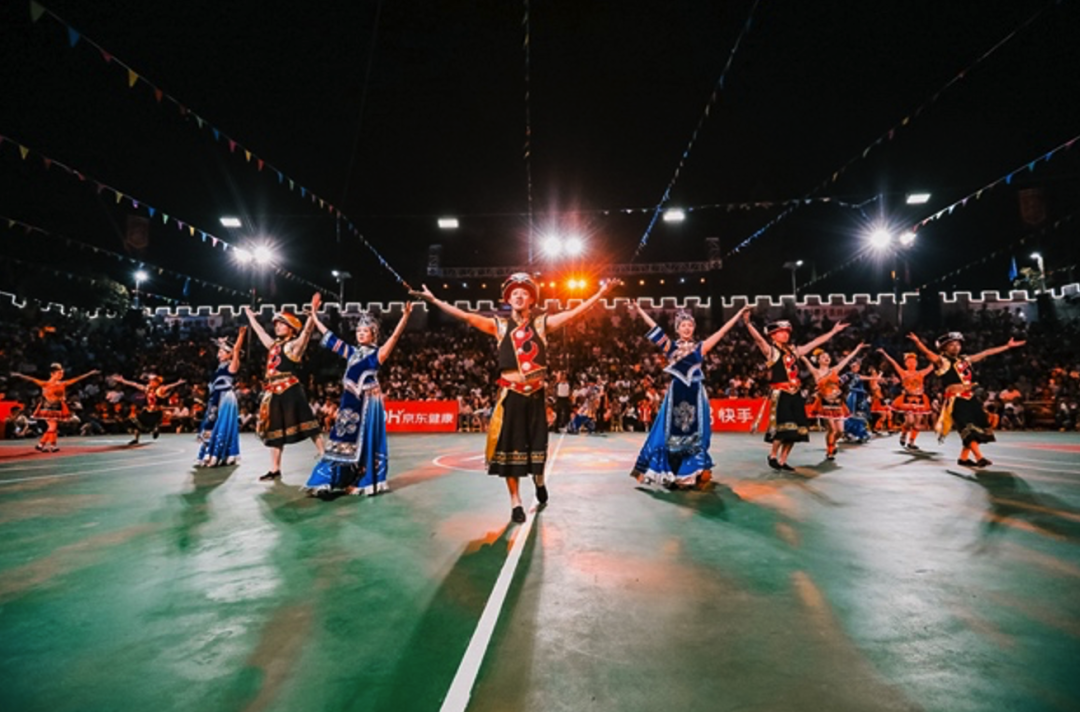 亮眼的數據,離不開精細化的運營和技術層面的支持。除了廣東站的“粵味”,貴州站分別邀請當地藝術團、小寨村孃孃們進行雜技、歌舞表演;寧夏站由非遺傳承人、尕遙歌手攜搖滾式寧夏小曲、沙“土”朋克登台,更有銀川藝術劇院帶來噴火術、彎道武士舞、鼓旗舞;更早之前的福建站,閩南舞獅、提線木偶戲和南少林武術贏得叫好一片……快手將羣眾體育賽事與文旅產業深度融合,讓“村BA”的精彩始於籃球,但不止於籃球。