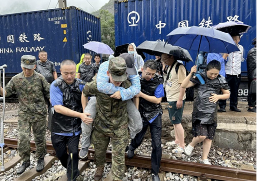 清晨5點,乘務組冒雨徒步,將1200餘件物資搬回列車,乘客們情緒緊張,人羣擁擠,乘務員怕出現踩踏,哭着喊話:不要擁擠,我穿着這身衣服,我一定對得起大家。