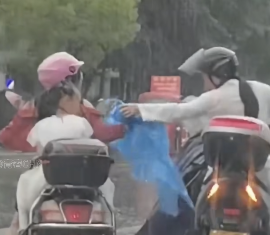 只要大雨天走進人羣時,善良的大人會遞給身邊被淋濕的陌生小朋友一件雨衣。