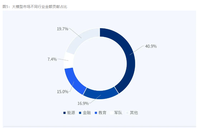 容聯雲這種戰略也不能理解,因央國企數據基礎設施建設完備、算力投入高、AI應用場景多且基礎強,目前能源、金融行業正和大模型快速融合。愛分析相關數據顯示,目前金融、能源兩個行業佔比金額分別為40.9%和16.9%。