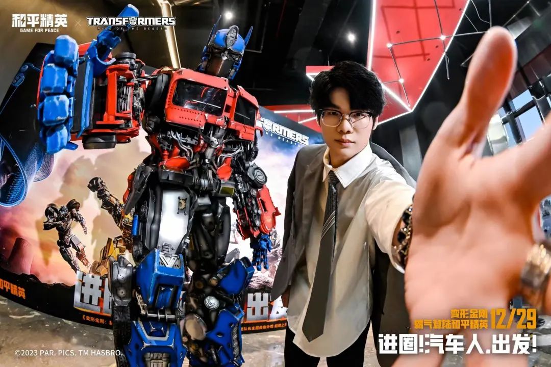 有趣的是,前幾天舉辦的和平精英年度頒獎盛典現場,有2.5米的擎天柱亮相,引來不少玩家與明星選手的追捧。紛紛打卡合照。也有玩家聞風而動,Cos成和平角色,到環球影長現場為反派威震天送上了“親切”的祝福。
