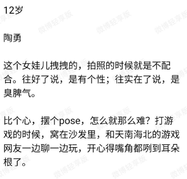 發表完這段長篇大論之後,陶勇又配了張女兒的照片,照片裏的女孩看起來一臉高冷,確實是陶勇説的“很有個性”。