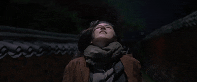 女主在醫院屋頂被日兵圍困,男主突然出現,救她於危難之中。