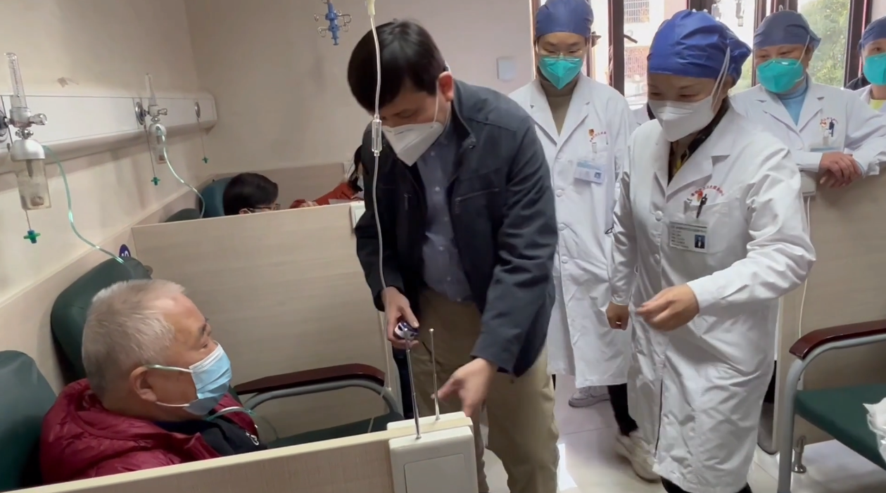 視頻中,張文宏對一名正在輸液的老人檢測了血氧飽和度,他指出,如果老人的發熱(通過掛水)還不緩解,就有可能表示體內仍有肺炎的存在,需要再加一點“強的松”(一種激素)和一些小分子的藥。