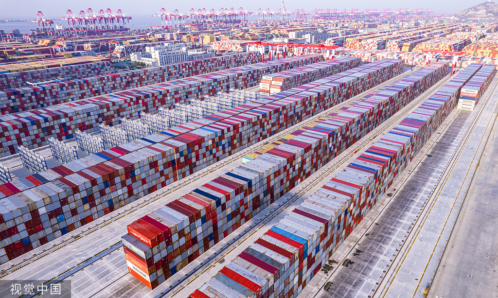 2023年1月8日,上海,日前完成擴建投入使用的上海港洋山深水港區堆場擴建項目。視覺中國 圖