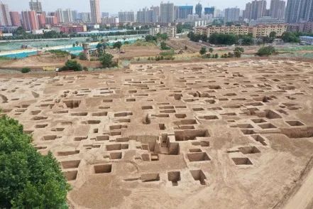 在東環壕北部中央發現有硃砂墓、夯土基址和大型地坑院建築等。同時在遺址裏面發現了當時人類生活使用的陶器、石器、骨器,通過植物考古學的浮選,還發現了當時人們生活所必須的這些糧食,包括有黍水稻等等,這都是為展示當時人類生活的一個全方位的場景。特別是小麥的發現為了解小麥東傳路線提供了明確的證據。