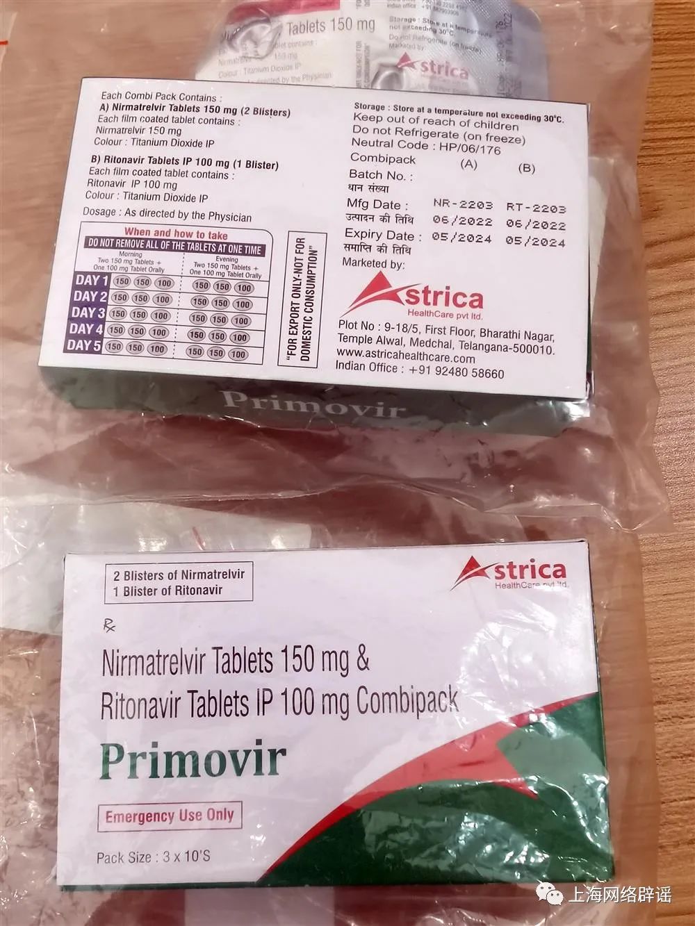 但事實上,近日多家媒體均報道稱“印度產輝瑞新冠仿製藥存在大量造假的現象”,尤其是綠色包裝的Primovir中假貨充斥。輝瑞Paxlovid中抑制病毒增殖的有效成分為“奈瑪特韋”,“利托那韋”則是輔助成分。而國內銷售的仿製藥中,不少並無奈瑪特韋成分。