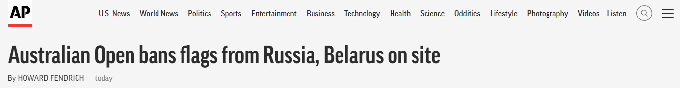 “我們最初的政策是,球迷可以把它們(國旗)帶進來,但不能用它們來製造混亂。”澳大利亞網球協會解釋道,“但昨天發生了一起事件,(俄羅斯)國旗被放置在賽場邊。”受這一事件影響,澳大利亞網球協會決定,“澳大利亞網球公開賽現場禁止出現俄羅斯和白俄羅斯國旗”。該協會還補充稱,“禁令立即生效。我們將繼續與球員和球迷合作,以確保提供最佳的環境來享受網球。”