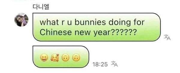 1月19日,丹妮爾通過該組合專用粉絲交流軟件詢問粉絲(bunnies為NewJeans官方粉絲名)春節要做什麼,並將春節稱為“Chinese New Year”。