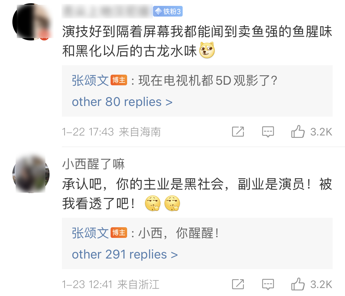 翻了翻張頌文的社交平台,沒想到一本正經搞笑的他持續呆在衝浪一線,每條微博下都能回覆20來個網友,接梗不重樣。