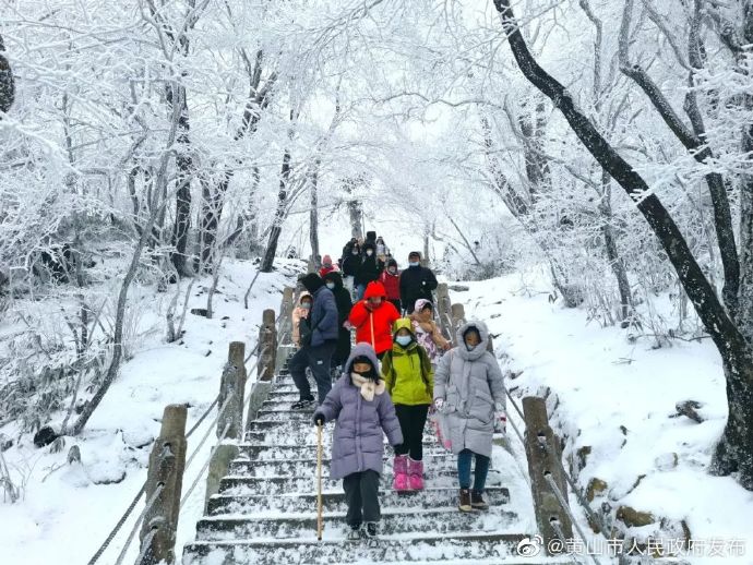黃山風景區提醒,根據景區氣象預報,近2日氣温偏低(-10攝氏度左右),已成功預約門票的遊客,請您提前做好防寒保暖防滑措施。為了減少入園排隊時間,請攜帶身份證件,在門票預約時間段內有序進入景區。